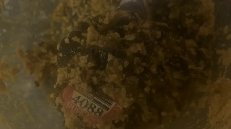 Look at what I found in the bottom of my egusi. It was a whole sticker for red peppers. It was cooked in the pot with the food. My child wanted this and if I didn't go put it in another container to warm it, they could have swallowed this and choked or got ill.