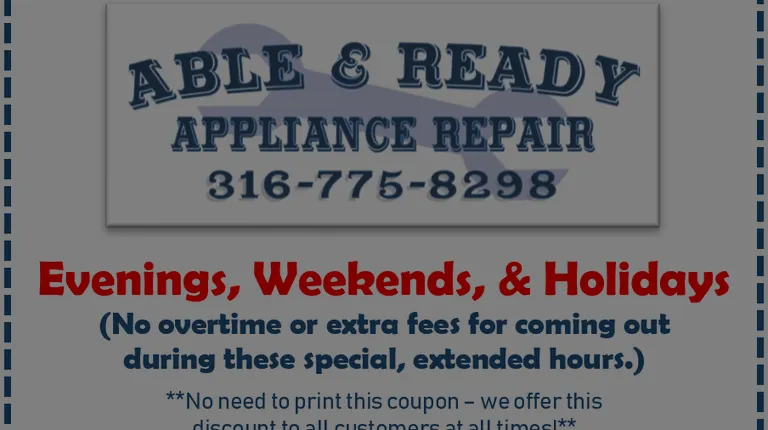 Able and Ready Appliance Repair Call us today for your repair needs!