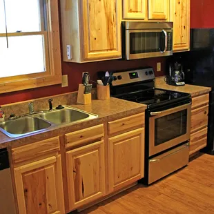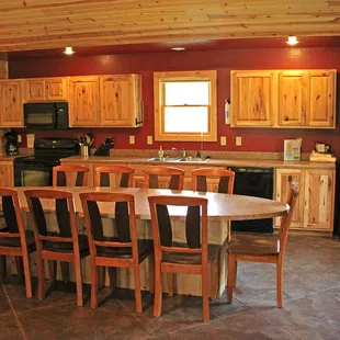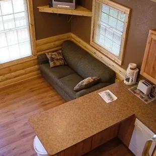 I have stayed here twice. One time in a 1 bedroom cabin and then this last time in October in Cabin 8 that fits a large group. Cabin is up to date, lovely, spacious, and as always Acorns staff is great! It's great it had two "living rooms" each with couches and tv's. I will be back to stay and visit again. Milford Lake is a very nice lake too. The cabins are set back into trees so that was nice for privacy.Only thing about Cabin 8: 2.5 baths but the half bath is upstairs. It would have been more convenient to have a bathroom with shower up there. Next time I'll bring my own skillet and a pitcher. Otherwise main dishes were supplied that I enjoyed using. Wi-Fi isn't the best, it was okay when only 2 people were using it but when you get a few it's really slow or doesn't work at all. Acorns does have a restaurant now, The Cove. We ate there on a Friday night. The waiter was very nice but the food wasn't prepared as ordered and it took a lot longer than needed to.Hopefully they will get the kinks worked out as I don't believe it's been open that long. They do have a great patio area, large with a great view of the lake. We were there at sunset and it was just beautiful. You can't go wrong staying at Acorns Resort!