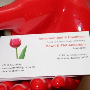 What a wonderful place to stay! Very inviting and warm, and incredibly well decorated! We enjoyed the sounds of Mrs. Anderson playing piano and checking out the very spoiled coop of chickens they keep, which make amazing eggs, and the location could not be better. You'll never run out of chocolate chip cookies or wine, so if those are things you enjoy, the Anderson's have got you covered, on the House. Breakfast in the morning was divine, we had homemade waffles, made from scratch Keesh, biscuit and gravy casserole and fresh fruit each day. Some days we ate at the crack of dawn others right before lunch time, you just let them know when you want to eat and your place will be set and if your up in time, the candles will still be lit!We stayed in the Van Mannen suite, it was spacious and well thought out, the shower was perfect size with a super high shower head which pleased my man of 6'5" who did not have to crouch to shower :) the bed is memory foam and delightfully comfy with lots of pillows to choose from. I'd recommend this place to anyone, and we plan to stay again this April for the Fort Riley Military Ball. Thanks Dawn and Phil, for a great experience!