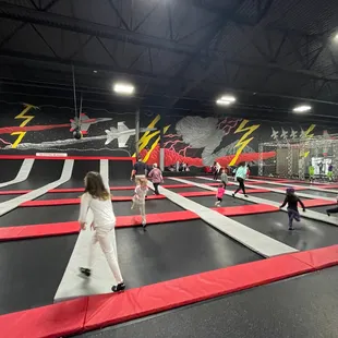 Took my 5 and 6 year old here this past Saturday and paid for an hour to play in the trampoline area. They absolute loved it!! There's a lot of stuff for them to do here. The whole building is big and they have other stuff to do like sand volleyball for older kids/adults but I only took them to the area where they could play. They have a foam pit for 6 years and under, a basketball area, and different obstacles to go through. I thought one hour would be good enough and wear them out but they wanted to play even longer! I will be doing my daughters birthday here in December since she loved it so much. Plus, they play upbeat music which makes us have even more energy!