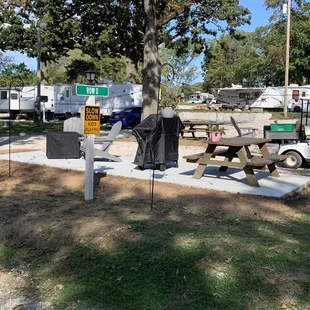 This is the pettiest place with the most idiotic "rules". They literally have a Karen who drives around on her golf cart to start shit. The ground have insects all over, wasps in every electric hook up. iv had to spray multiple times. 80% of the camp sites are not even close to being level and the sewer hook ups run uphill from your camper. the spots are tiny and roadways run 2 feet from your camper. Customer service was unprofessional, hypocritical, petty, and very passive aggressive.