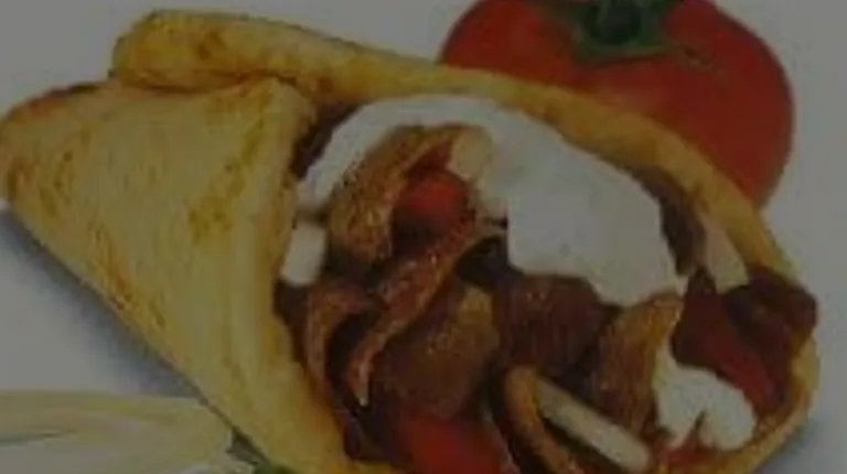 Our Horseshoe - Pita, Gyros, surrounded by cheese fries, topped with onions, tomatoes and cucumber Tzatziki sauce