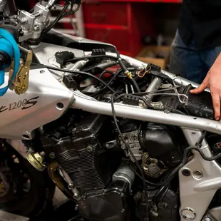 My 'o4 Triumph Sprint took ill with a charging problem while on my annual jouney from PA to CO. I was 80 miles south of Wichita at a gas-stop when she refused to start after a fill-up. I started calling every place I could find and when I finally got Brian from Biker's Edge on the line, I started to feel like there was hope! He was positive and said, get the motorcycle here and we will definitely get to work on solving the problem. He recommended a guy who would come down and tow it to Wichita. Fortunately, I gave the starter another shot, and it fired up. I sped up I35 and got to shop about 2pm and Brian introduced me to Levi, the tech who was ready to start work. Brian got me to a nearby Hotel and I settled in. By early next day, Levi had diagnosed a burned-out Stator and had found one in WI at Parts Unlimited. The part was shipped and got to Biker's Edge about 10am next day. Levi was on it and by 1pm, I was back on the road to Denver. I could not have asked for more service, attention, and expertise. GREAT JOB, GUYS. In Wichita, motorbike service is spelled "Biker's Edge"!! JR, West Chester, PA