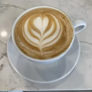 WOW! LOVE this place!!!! Such a gorgeous clean space! Beautiful natural lighting. You can sit by the window and look towards the river. So many birds flying over the river. Love the natural wood and white plus grey decor. The space gives one a buoyant feeling.I ordered a 12oz Oatmilk vanilla latte. The regular amount of vanilla (1oz), was too sweet for me. Next time I will ask for half sweet. In addition, I chose the home made cinnamon roll with cream cheese frosting. My latte and cinnamon roll cost $10.93 for both. This is average cost for these items in Lawrence. They offer a water station, too, which is wonderful for keeping hydrated while you caffeinate yourself. They offer cookies, cupcakes and macarons. Flavors of cookies vary with a few sounding super interesting: white chocolate & raspberry plus a Mexican chocolate.So much love has been put into the details here! I HIGHLY recommend making a visit here! I lived in NYC for over 19 years and this is a New York quality kind of place!Thank you, Cleo & Leo! Can't wait to sit outside on the patio when the weather is warm.