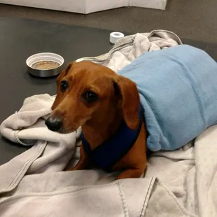 For rehab this is hands down the best clinic in the Wichita area and I've tried them all! The PT is also a human therapist who works half his days with people and half with dogs. I bet he likes the dogs best... The underwater treadmill water is clean and smells good. The other clinic in town that has a treadmill leaves your dog smelling awful, so don't go there unless you want to give him two baths and still have the whole house smell funny. Countryside takes time working with your dog and showing you what to do at home, and they encourage you to stay with your dog which Hank loves. I'm so glad I found them for my sweet older boy with a degenerative spinal problem, they have given me hope when the other clinic was uncaring and cold.