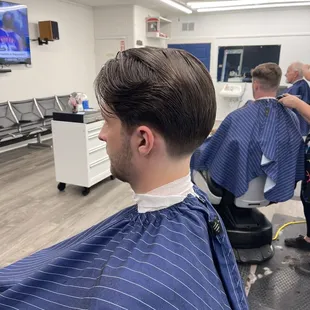 Although I've only been once so far, I am comfortable say this is an excellent barber shop with a very friendly atmosphere. The owner cut my hair and did an awesome job. Wait isn't long and they are fairly priced. All the barbers had customers rolling through so I imagine they are great barbers as well. I will be making this my home barber shop.