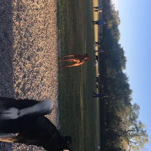 We loved this place. Friendly people and dogs. Not too many dogs there around 6pm. Bring the big spray ... I walked the path around the place also , my dog and I really enjoyed this place .