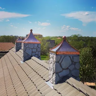 Tile roof repair with standing seam metal roof around the cone that was leaking for years