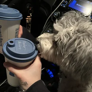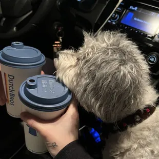 We stopped by on our way home to omaha Nebraska from Dallas Texas with our 3 dogs in the car our 9 year old havanese Vivian is pictured approving the drinks lol we've currently been in the car for around 5 with around 4 left this was our family's first time at Dutch bros Carley helped us she gave fantastic recommendations our dogs got a little pup cup to share since we have such a long drive she was super sweet and offered us 3 of them tho both my parent love what they got my dad got a chi latte with horchata my mom got a snickerdoodle latte with white chocolate and caramel something along those lines you'll have to go ask Carley she said it's one of her favorites my mom loves it Carley was so helpful she nailed it with her recommendations she has an amazing vibe you can tell she's a great person to work with and be around definitely worth stopping at this location and trying out some drink recommendations they have safe travels to everyone