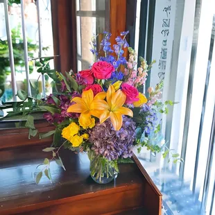 Called and spoke to Barbara, she helped me design and absolutely beautiful arrangement and a tri folded pre-preprinted card with note.They took visa and emailed me a photo of the masterpiece! I look forward to ordering more flowers with them! Thank again