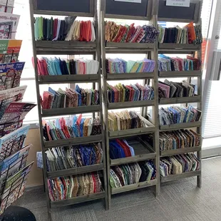 Run by a husband and wife duo, this service station turned quilt shop has a variety of fabric and notions to suit any quilter or sewist. A plethora of fat quarters at $3 each as well as bolt after bolt of different colors and themes of fabric. While the shop extends through three rooms, I was a little off put that the owners walked with us from room to room. While they were friendly, it felt uncomfortable.