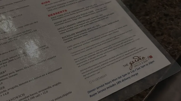 We ate dinner at the Garden Grille and we were in a bit of a hurry. The burgers were delicious and the waitress was fast and attentive. We would happily eat there again.