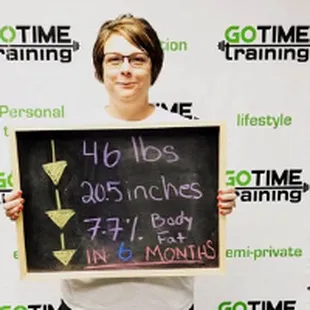 I have been a member of Go Time for a year now and it has changed my life! I had injured my knee years ago and also, had arthritis-I could barely walk up the stairs. I work with Anjelica in personal training and the other trainers in Boot Camp to build up my muscles through strength training while showing me the safe and proper way to do the exercise. Now I can carry weights up and down stairs and I no longer have knee or joint pain! Casey is the nutrition coach who has helped me with my nutrition to eat healthier and as a result I have lost 50 lbs and have so much more energy! The clients and staff are so nice and helpful! Give Go Time a try you won't be sorry!