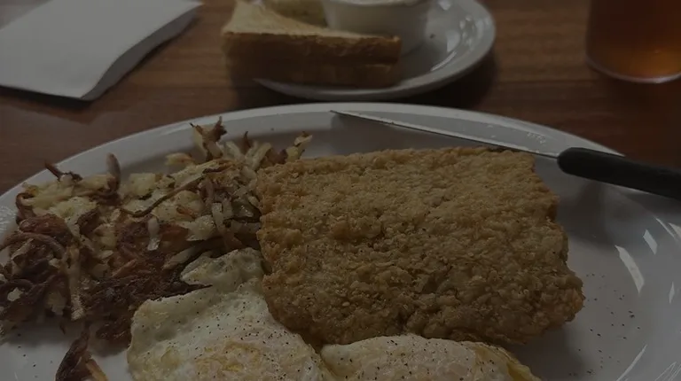 This is the steak and eggs breakfast at The Grain Bin Restaurant in Chanute, KS.