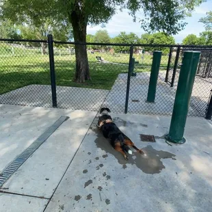 very fun park, large dog side and small. nice people! the big dog side is pretty spacious i think like about an acre n a half. theres benches and an awning for shade. theres a lot of room to have privacy with your dog.