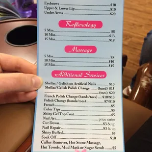 Here's the pricing list
