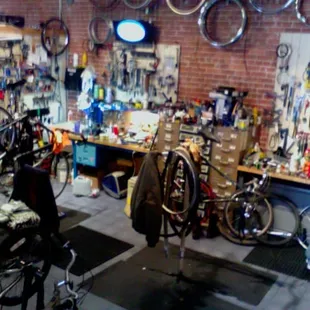 A quaint little bike shop off the brick street Mosely in Oldtown. The proprietor is really knowledgeable about bikes and has a good selection of parts and extras. It seems to be a busy shop considering all the bikes in the repair or tune up department. Kind of reminds me of the bike repair shops in Denmark, just a little bigger. We ride a lot and push for more paths and bicycle friendly streets here in Wichita, as it is with the more progressive cities across America. These establishments encourage cycling therefore we like to support them.You might be able to save a couple dollars at Wallmart, but it's not worth it. Shopping here and chatting with the owner is just fun, and if you need a tuneup this is the place to go. Some of the sporting good stores offer this but your likely to end up worse off than you were. Point is, trust your safety to the professionals.