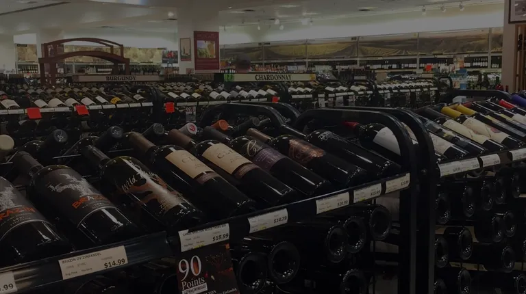 rows of bottles of wine on display