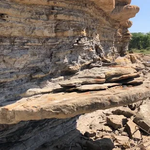 Beautiful park! We started our hike at Buffalo Track Canton Nature Trailhead, which is located a short drive into Kanopolis Lake State Park. This trailhead has two entrance points, and one is usually more manicured than the other. We didn't know there was a difference at the time and took the path less traveled and less tended to. Which was unfortunate for us because we were walking through tall grasses and brush, which was uncomfortable because some of the people I was hiking with were wearing shorts. So, if you want a more pleasant hike, make sure you're taking the hiking trail that has been mowed.Other than slapping away plants and hoping we weren't transporting ticks, the hike was great and the scenery here is beautiful. Our trail was a little less than a mile one way, and led us to a really cool cave with rocks that looked like the profile of a person! We checked out the cave for a while, then headed back. Once you're at the cave, you do have an option to travel down another trail to go farther into the park, but we chose to just head back. There's a lake here and other things, but we only visited the park to hike. We had a great time hiking, though! This part of Kansas is beautiful, and walking through Kanopolis is a great way to experience some of it.