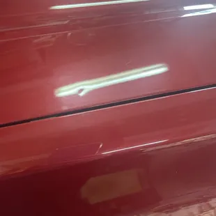 Small place, not that it matters, but it was clean. I was greeted as soon as I walked in and the guy acted like he actually wanted to be there and enjoyed his job. He looked at the quarter sized door ding and said they could take care of it for $75 and it would take an hour. One of the other employees came into the waiting room and was personable, he said this place has been here for about two years. I waited for 45 minutes and the owner came back in and said my car was done. He said that he wasn't able to get it all out but it looked pretty good. I went out and looked myself and I was unable to tell where the dent had been. To my untrained eye it looked perfect. I was very happy to say the least. I would definitely recommend them for this type of work.