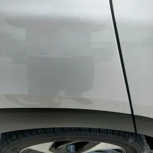 Ken did it again! My car was the victim of misfortune when a Uhaul's tire exploded on the highway and flung back onto my car going at 75mph, leaving this ugly dent. Ken responded to my query immediately and I was able to get the car into the shop the next day. He came in early to work on the car so that I could have it back in time to travel back to Texas. Amazing work per usual!!