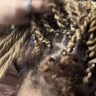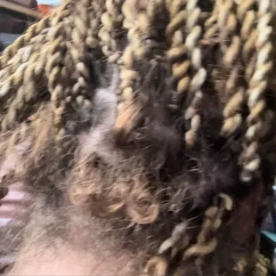 I looked at these pictures and this is not the work of any African hair braiding person and i have been to plenty of them they are neat and do some of the best work when it comes to african style hair sur they may braid a little to tight and can grab the tiniest pieces of hair and braid or add hair to it but never have i or anyone for that matter left this shop with their hair looking like this PROVE IT.