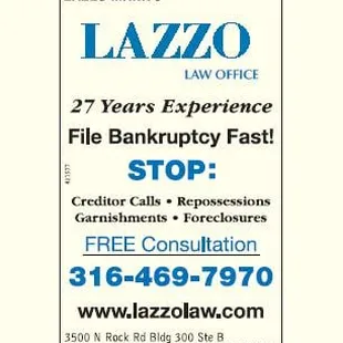 Just called this office to see about a consultation and pricing in one, the receptionist got snooty saying he was a bankruptcy lawyer, while trying to tell her I knew that but he came up on the search, she interrupted me and said she would get the attorney. Spoke with Mark Lazzo who was also incredibly rude and while thanking him for his information he blatantly hung up on me. I get that it wasn't his thing but your receptionist didn't have to transfer me to you like she did and if that is how you treat people, it amazes me you still have clients. Don't use these people and don't bother calling. Worst experience ever when all I was doing was inquiring. Wow, just wow.