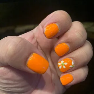 Overall, this place is okay. but when you're paying so much money to get your nails done, nobody wants just okay. I've been here twice and have gotten acrylics, dips, and a classic pedicure. The woman who did my pedicure did a great job and was very nice, and she didn't seem rushed to get me over with. The store is very clean and has a good atmosphere, as well. However, i had the same man do my nails both times, and both times he left me with obvious cuts. The first time i went, he left a pretty big one that actually hurt, and i know he noticed it but didn't say anything... He also left my dips very crooked and chunky, with gel on my cuticles, and both times has never given me a manicure, i still have hangnails and stuff all around. He did okay.