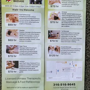 We offer Swedish, Deep Tissue, Thai, Ashiatsu, Hot Stone, Couples Massage as well as Reflexology, Body Scrub, Facial Spa & Chinese Medicine.