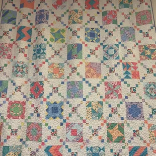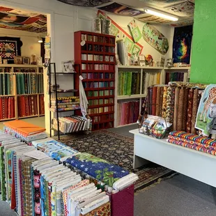 Conveniently located on Main Street, this small shop has bolts and bolts of fabric as well as notions and precuts to choose from. They also have one of the best fat quarter displays I've ever seen! Panels adorn the ceiling so you can easily see the options available.