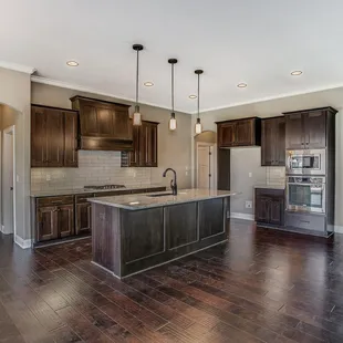 a kitchen with a center island