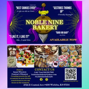 Noble Nine provided cupcakes for my grandma's 101st birthday. They were easy to order from, met our expectations exactly. Absolutely delicious as well!