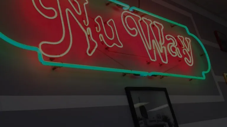 a neon sign for nu - way