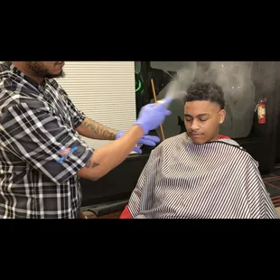 Needed someone to tame my sons mop. This was our first time trying this barber. I'm glad we did. This is the place to go. Great atmosphere and friendly owner. My son actually liked his hair cut. Will come back with my other son who is looking to get a design shaved into his head.