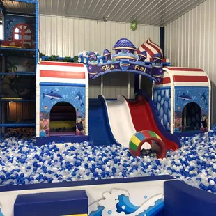 Cleanest playground that makes you 2nd guess children were there. This place is $5-6 plus tax depending on the day for 2hrs play during specific hours. 2hrs is plenty enough time for your kids to play and be well tired out. My favorite part is the staff that will play with the kids making sure each kid is okay. So if you hear is a kid crying, you don't need to worry about rushing thru to get them. The staff is great about making sure every kids is safe. Crawling age and up are suited well for this place. There are snacks and drinks if you need anything. Also each kid will receive a sticker with their name and wrist band for anyone playing. Helps keep track of children leaving with the right parent. Evenings and weekends are the busiest, but only 40 tickets are available for each session. Afterwards, they clean for the next hour for the next session. Check out their ball cleaning machine! No more smelly balls from grool and other liquids