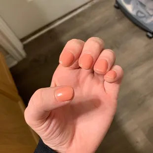 I had a great experience the first time I came in for a pedicure, so I decided to come back for a manicure. I am very careful with who I go to for my nails, but I really did trust them because my previous nail tech was great. I asked for them to soak off my gel x. Although I understand it does take a while, my tech had me soaking in acetone for over 30 min and then kept telling me afterwards that my nails were thin. She kept pressuring me to get dip powder because my nails were so thin, even though I told her that I was trying to let my natural nails breathe. I get my nails done often, so I know that acetone and drilling does weaken my otherwise healthy nails. I also asked the tech to be very gentle with the e file because I have a tendency to get nicked, but she completely ignored what I said and continued to be so rough that I ended up with cuts all around my cuticles. I even told her that she cut me, and she proceeded to cut me even more. I ended up going with gel and she did a very lazy job with the paint, she missed a good portion of my nails. It almost felt rushed and I could tell she was getting distracted and not looking at my nails at times when she was doing them. I never write reviews, but I felt compelled to do so because I am still in so much pain from my cuticle cuts and both my nails and toes look so bad that I will have to go somewhere else to redo them. Other people may have a better experience, but I certainly won't be back.