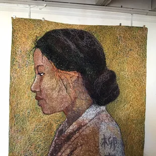 My family visited Lindsborg on the 30th and 31st of December. We stayed at the Swedish Country Inn, so we walked to the Red Barn Museum. It is a really, really neat building! It has an amazing history about it. The art throughout it is very impressive! Lester Raymer did almost every medium of art. My favorite "thing" about the museum though was the artist working in the back room, Shin-hee Chin. Shin is an amazing artist! She uses large thread on things like blankets, to create murals. It takes a lot of time and patience! She was very nice and spent a lot of time talking with us. Check out her website!