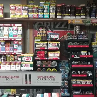 I usually by dip for my husband from Tobacco Alley in Manhattan but I was in JC so I decided to stop by Rex Smokeshop to pick up a log from there. They only had one log available and when the guy rang me up he told me $24 .... I said excuse me how much is it. He said well it's $23.95. When I told him that's not how much logs of dip are he told me that tobacco prices just got raised. Ummm no they didn't. I left, went to Walmart and picked up a log for $18 and then went to Tobacco Alley in Manhattan which I should have done in the first place and picked up 5 logs at $16.95 a piece. This store is a total rip off ... and Smokeshops are suppose to have better prices.