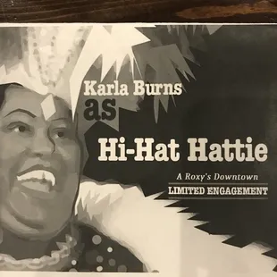 Great show with Karla Burns in Hi-Hat Hattie. Karla and pianist Huron Breaux presented Hattie McDaniel's story through her songs that entertained the world. The heartfelt story of Hattie's life interwove through the struggles of the times. Totally enjoyed hearing and seeing Karla bring Hattie McDaniel to us. Both the singer and musician enjoyed presenting this incredible story. It showed. Excellent. The food tasted surprisingly good. I would gladly eat at Roxy's again. Fun night!