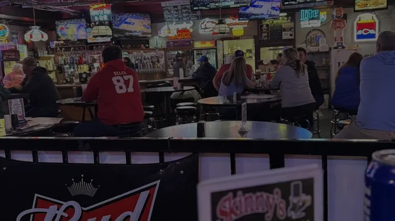 a sign for skinnys sports bar and grill