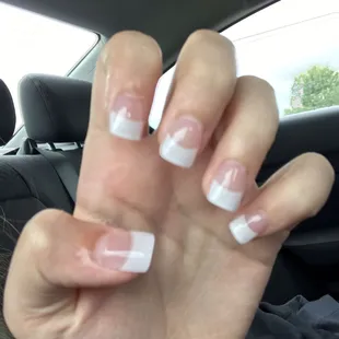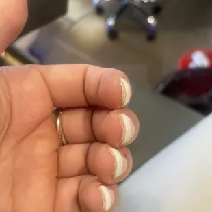 Given them 2 tries now and they've made me bleed both times (you can see in the pic). Also, horrible French "dip" manicure. SO thick and barely even shaped them/filed them.