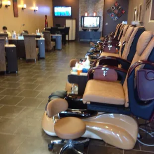 This place is amazing! I got a manicure and pedicure and it was amazing! It has a great pedicure seating and the chairs massage you! They put hot towels on your legs and massage them with lotion! Also during your manicure you get a sugar scrub put on and then lotion massaged in! I have been going to this place for years and still love it!