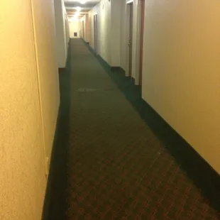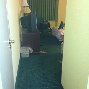 Outside makes me think of a rundown daycare... The hallway is ghetto and the room needs to be thorough cleaning.