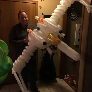 Chris is incredibly tallented and can make anything with balloons! He puts on such a fun show! he is fun and engaging and all the kids (and adults) love him! I'd highly recommend Chris for a magic baloon show and or to make fun unique custom balloons for any occasion he made some fun monster balloons for my sons 1st birthday and just made some awesome Batman themed balloons for a 3rd birthday. We are so pleased with his work and I can promise you won't be disappointed!