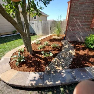 This was a grass area where we excavated the old grass and replced with cobblestone, edging, and some fabulous shrubs