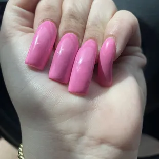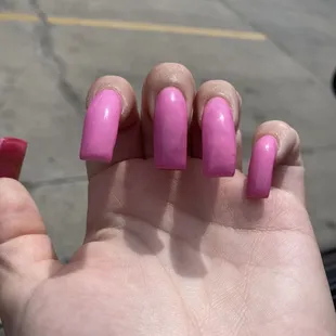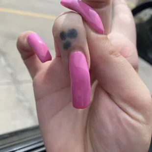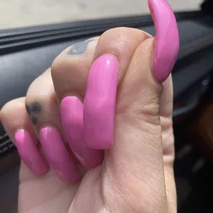 I took my niece here to get two full sets and two classic pedicures for her and I. Positives: -no wait time, they got started on us right away - nails feel like they are securely on and are comfortable - checked in with us often about how we wanted the nails to look - really took their time getting the nail shapes perfect Negatives: - person doing my nails drilled into my cuticle and made me bleed 3 times - we got there at around 1:30pm and we didn't leave until after 4:45pm- not a lot of color selection (plenty of nudes and pinks though, just not a ton else. Really lacking in glitter) -the flame design on my nieces nails wasn't very good - glitter polish was applied in a hurry and came out splotchy and not near as glittery as I was hoping - sanitation seemed a little lack luster - lady doing my nieces nails was also taking all the calls and incoming costumersAll and all I would go here in a pinch, but I would never choose to go out of my way to get here again.